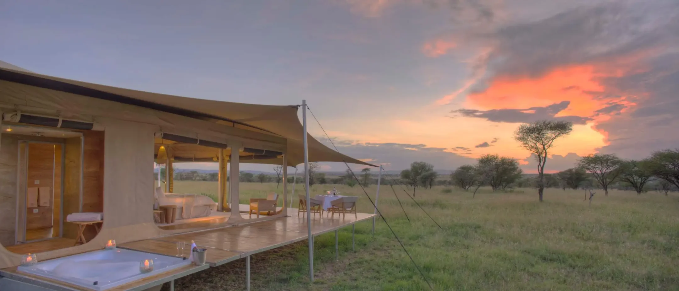 - Ultra-luxury accommodation: private rooms under canvas